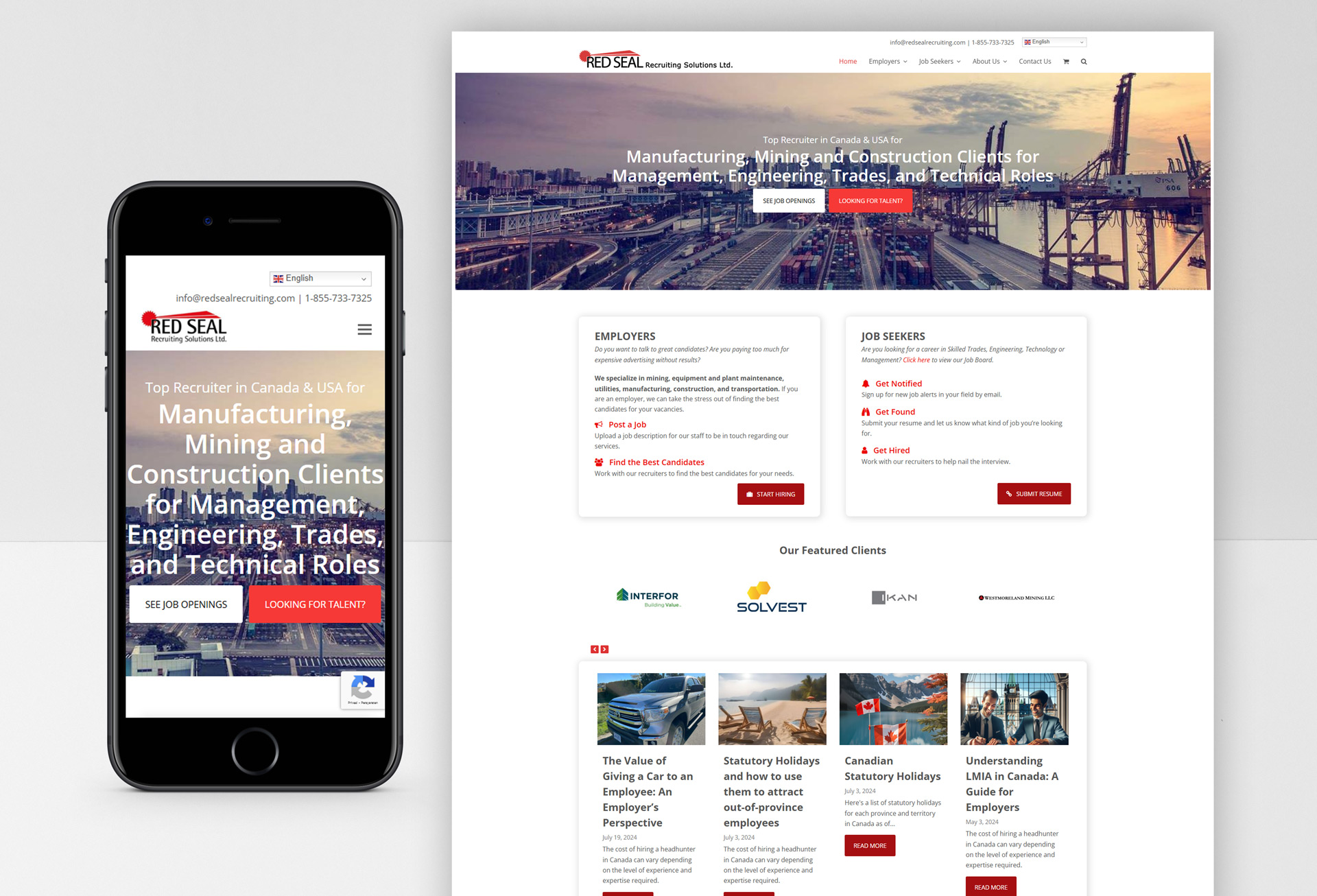 The website for Red Seal Recruiting Solutions Ltd was developed to offer recruitment services and job listings.