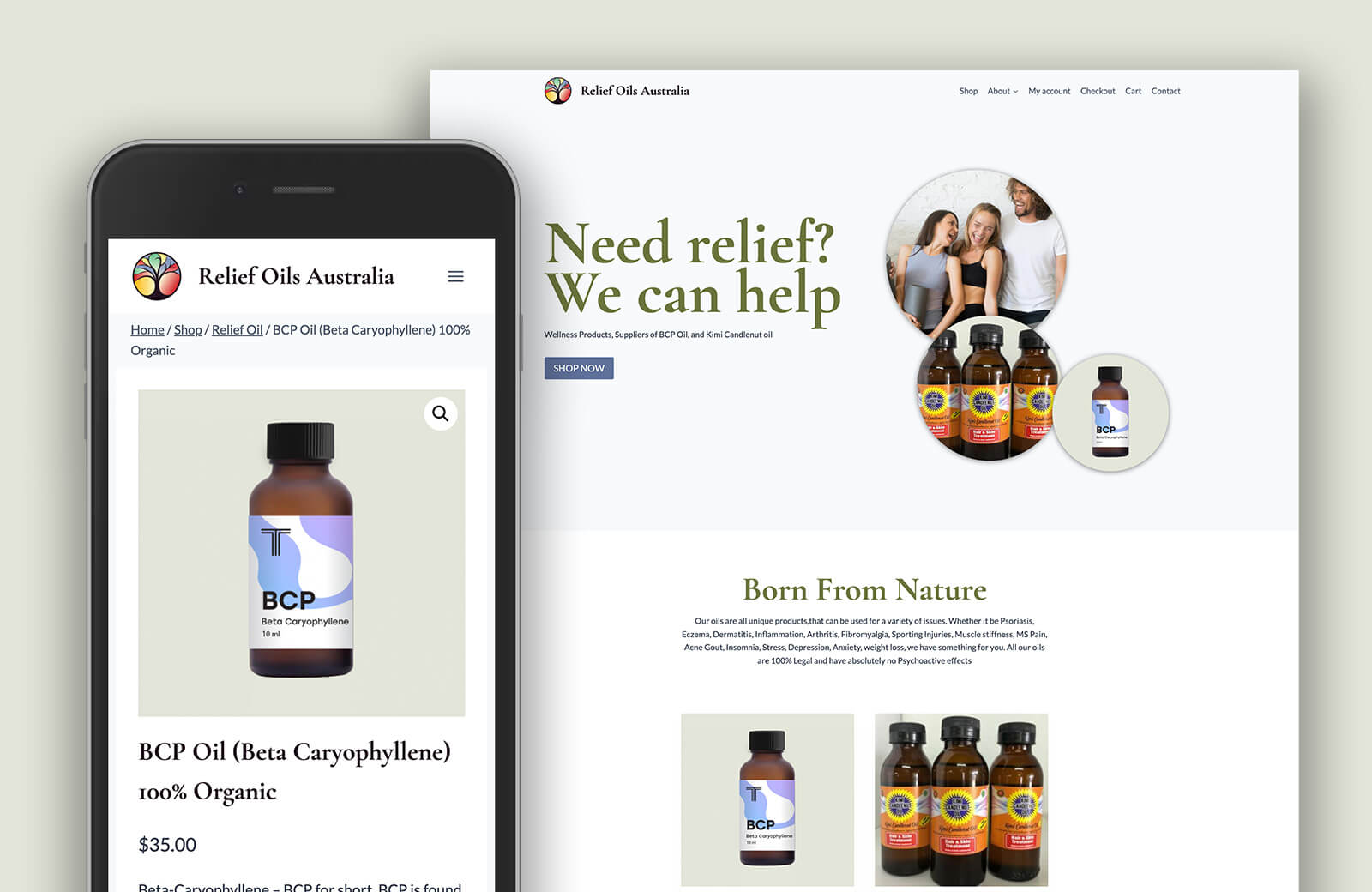 Ecommerce website for the home of the Relief Oils Australia.